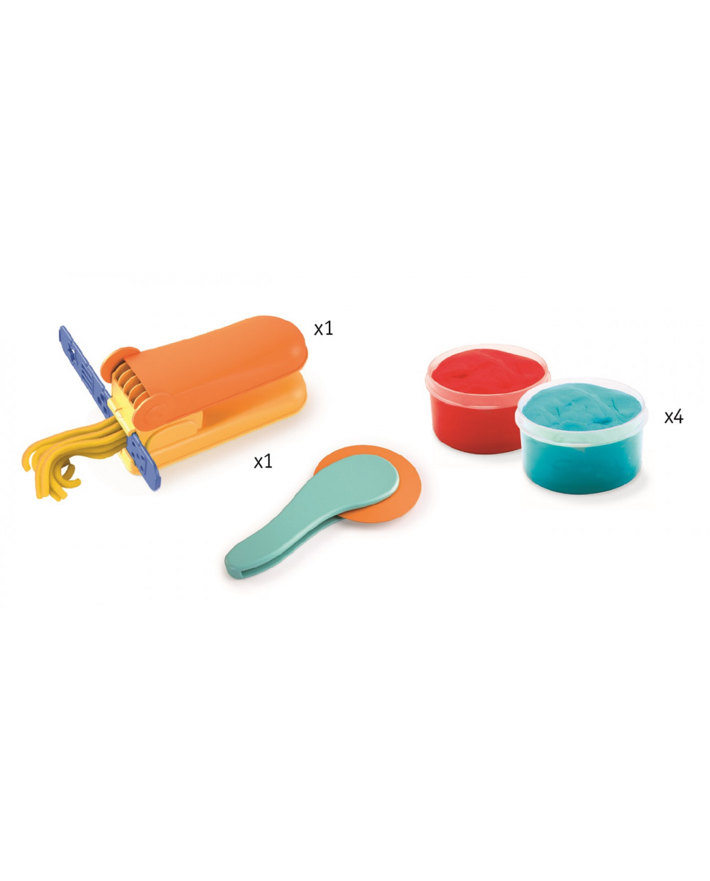Další krásná výtvarná sada pro nejmenší. Sada obsahuje 4 desky k dotvoření s motivy holčičky, pejska a dalších, 1 vláskovač, 1 rádilko a 4 barvy modelíny v množství 80 g. Obrázky zdobí děti modelínou vytvarovanou vláskováčem nebo nakrájenými prožky. Vytvoří tak veselé obrázky z kudrnatých, rovných i střapatých vlásků. Balení obsahuje návod krok za krokem.